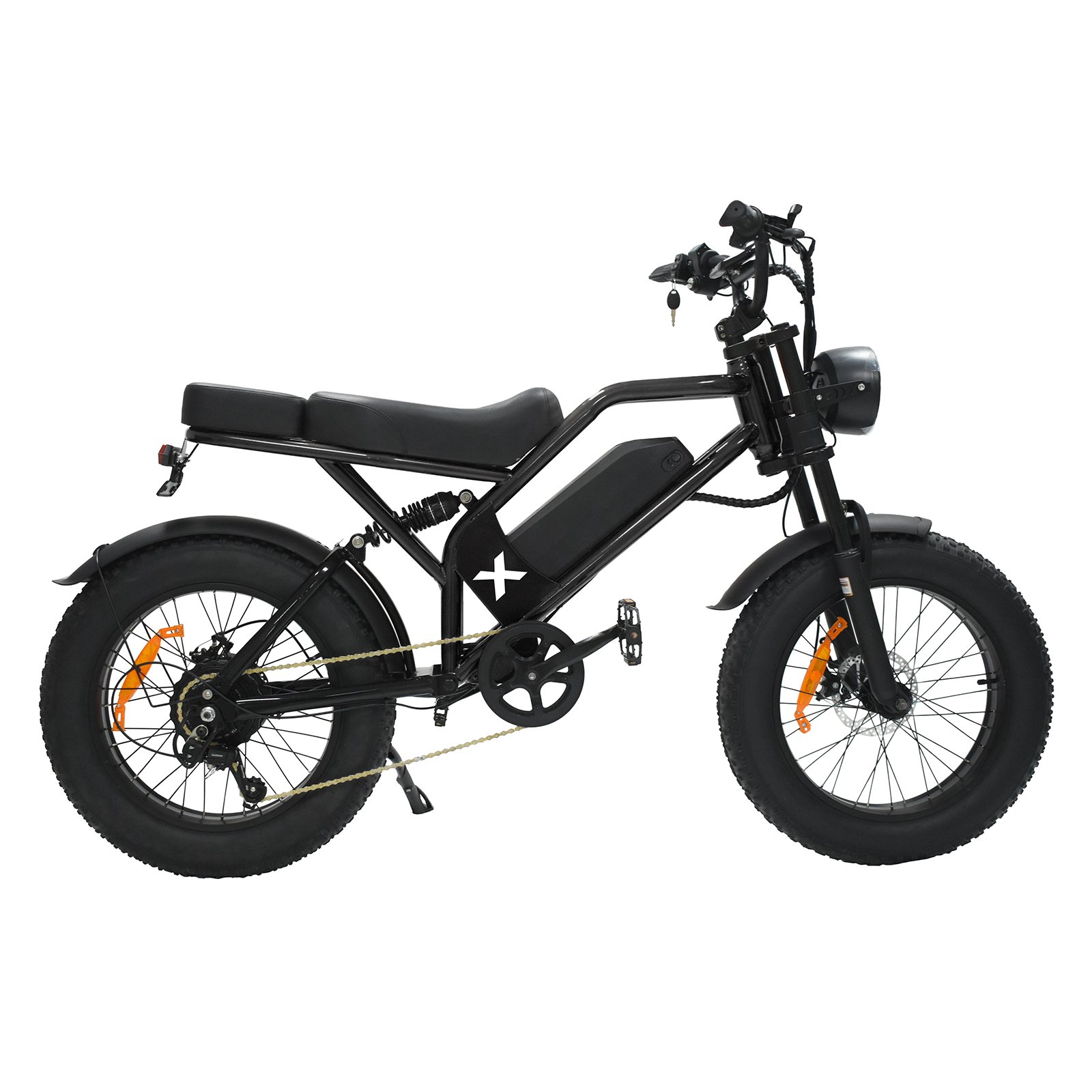 Built on a carbon steel frame and equipped with 20×4.0 fat tires, the FG20 delivers excellent stability and comfort on city streets, bike paths, and uneven pavement. The front suspension fork smooths out bumps, making short daily rides more enjoyable and less tiring.